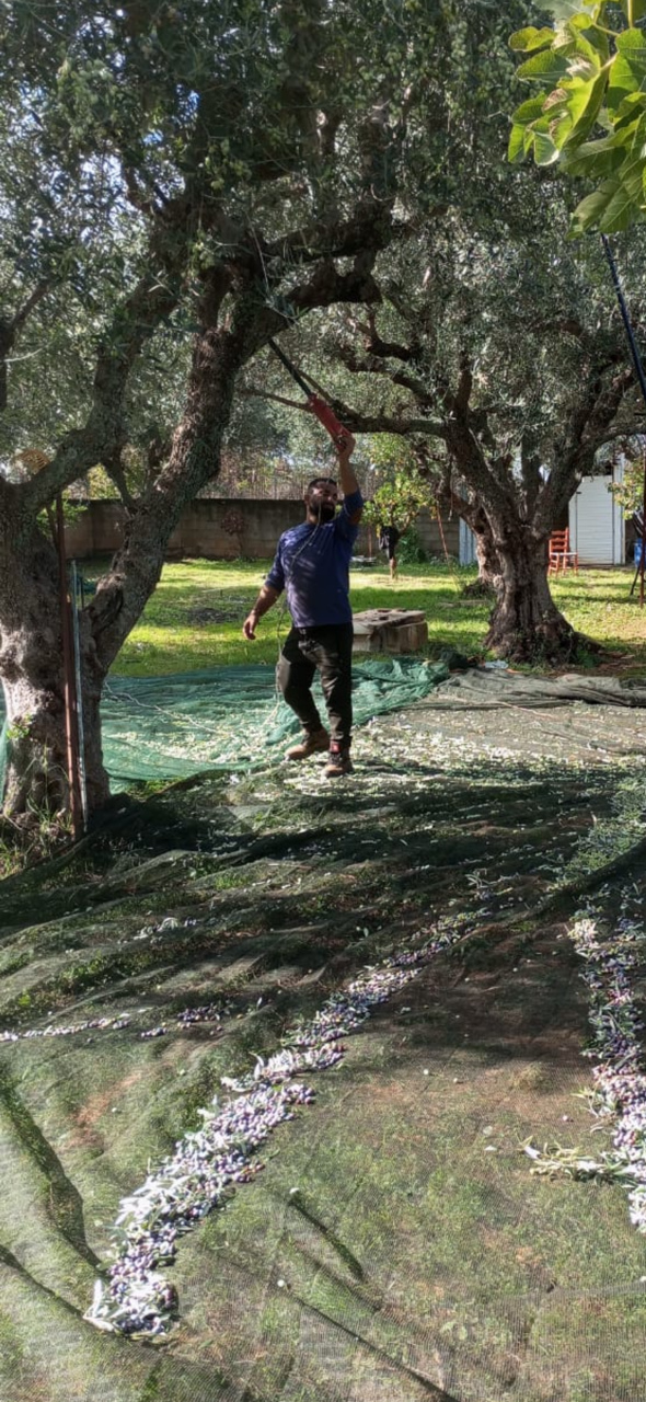 Das Ergebnis sind perfekte Koroneiki Oliven, schonend geerntet für Tier und Baum. Anschließend geht es dann direkt in die Öl Mühle.